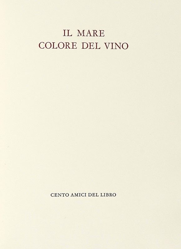 In-4° (mm 335x245). Con 3 acqueforti originali fuori testo di Bruno Caruso, protette da velina. Uno strappo con mancanze ad una delle veline, altrimenti ottima copia. Cartonato editoriale bordeaux, protetto da velina (con lievi difetti), con titoli su tasselli cartacei al dorso e al piatto anteriore; custodia in cartone bordeaux. Uno dei 100 ad personam su una tiratura complessiva di 130 copie su carta a tino Magnani, firmate a matita al colophon dall'Artista. SI AGGIUNGE: Tacitus Publius Cornelius, La Germania. Traduzione di Filippo Tommaso Marinetti. [Milano]: Cento Amici del Libro, [1993] (Al colophon:) Santa Lucia ai Monti: Alessandro Zanella, 1993.