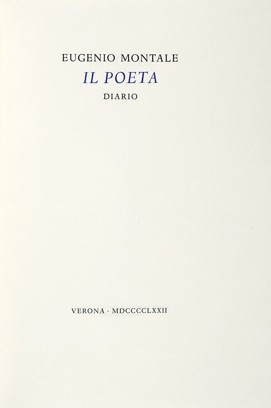 In-4° (mm 295x205). Ottima copia in barbe. Legatura editoriale in mezza pergamena con piatti in carta Lima, titoli impressi in oro al dorso; entro custodia in cartone con lievissime macchie. Uno dei 150 esemplari in numeri arabi, su una tiratura complessiva di 165 copie stampate su carta a tino Magnani e firmate a penna al colophon dall'Autore.