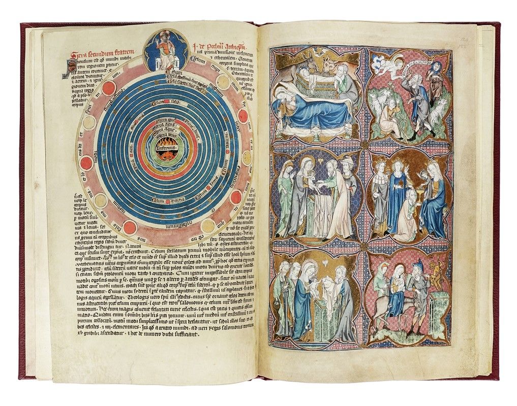 In-4° (mm 350x230). Finemente illustrato con miniature realizzate con oro a caldo in foglia a 22 carati e in polvere. Legatura editoriale in pelle con impressioni a secco e quattro borchie in ottone ai piatti. Presente il volume di Commentario di Lucy Freeman Sandler, in legatura editoriale in piena tela. Entrambi entro cofanetto in plexiglass, in ottimo stato di conservazione. Uno dei 450 esemplari in edizione speciale, realizzati da Scripta Manent.