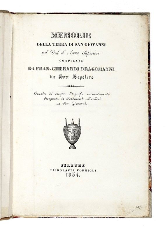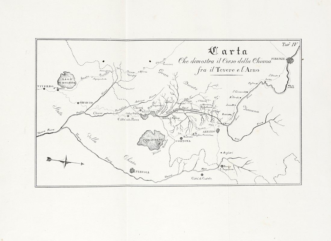 2 volumi in-8° (mm 218x145). Pagine XII, 242; IV, 290 con, complessivamente, 2 tavole calcografiche fuori testo, di cui 1 più volte ripiegata. Buona copia in barbe, con i frontespizi bruniti e rimontati, presumibilmente provenienti da un altro esemplare dell'edizione del 1812, anche se la collazione del primo volume coinciderebbe con quella della prima edizione indicata da OPAC, con la carta π3 segnata 2*e la carta P10 bianca. Margini di alcune pagine più corti, uno piccolo strappetto restaurato al margine inferiore di pag. 165-166 del primo volume e rare fioriture. Legatura in piena pergamena coeva rimontata, con titoli manoscritti al dorso; sguardie rinnovate. Difetti al dorso. Ex-libris al contropiatto anteriore. LEGATO CON: Elementi di grammatica universale tratti dalle lezioni di belle lettere di Ugo Blair... S.d.e. [i.e 1802]. In-8° (mm 218x145). Pagine 56. SI AGGIUNGE: Rondinelli Giovanni, Relazione [...] sopra lo stato antico e moderno della città di Arezzo... In Arezzo: per Michele Bellotti, 1755; SI AGGIUNGE: Pizzetti Pietro Pavolo, Antichità toscane e in particolare della città e contea di Chiusi [...] Libro primo (-secondo). In Siena: per Francesco Rossi stamp. del pubblico, 1778-1781. SI AGGIUNGE: Gherardelli Dragomanni Francesco, Memorie della terra di San Giovanni nel Val d'Arno superiore… Firenze: Formigli, 1834. SI AGGIUNGE: Manetti Alessandro, Sulla stabile sistemazione delle acque di Valdichiana... Firenze: Bencini, 1840. Tutte le opere, ad eccezione della prima, presentano difetti da controllare.