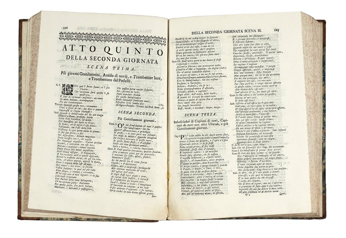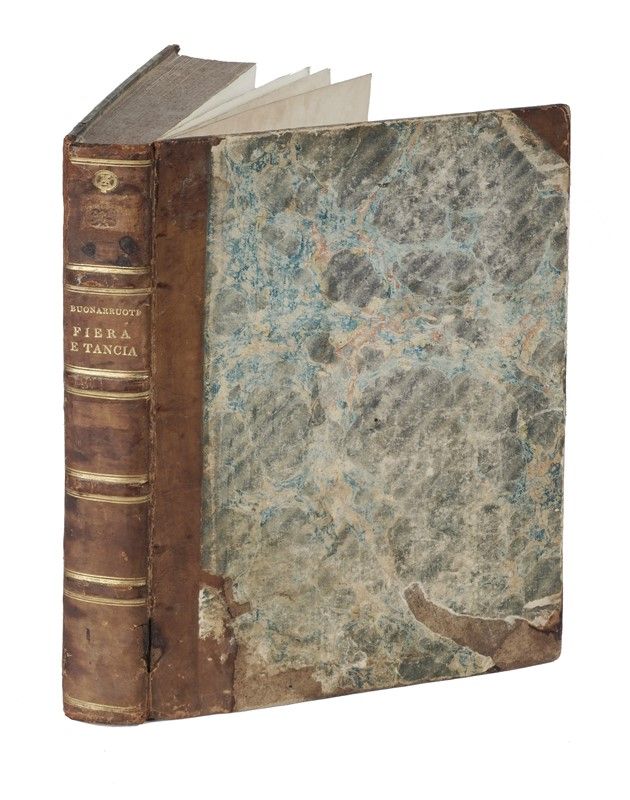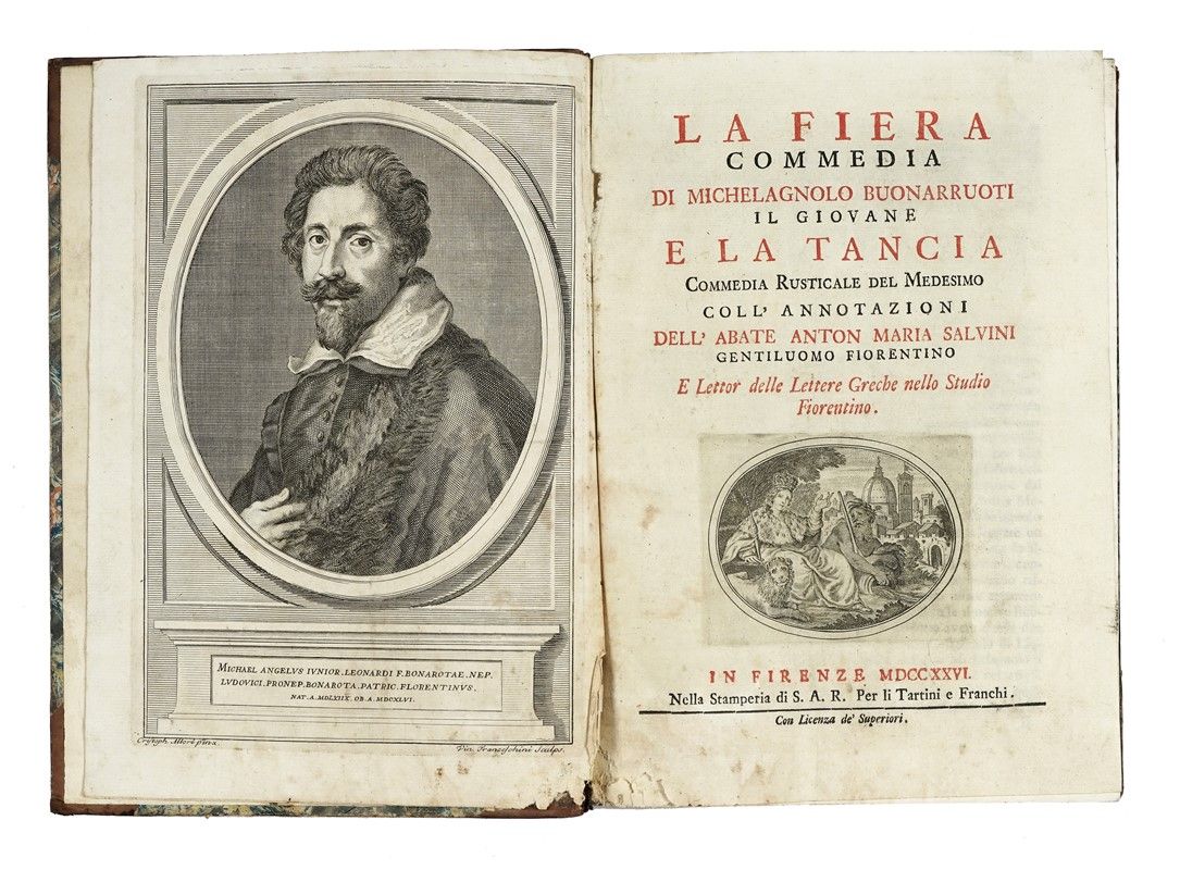 In-folio (mm 285x206). Pagine XVI, 603, [1], con 1 ritratto inciso in antiporta. Bella marca calcografica con veduta di Firenze al frontespizio, stampato in rosso e nero; testatine, capilettera e finalini in legno. Alone al margine interno inferiore, con minime perdite di carta alle prime e ultime carte, per il resto buona copia in mezzo vitellino posteriore, dorso a nervi con titoli e filetti dorati, tagli spruzzati (abrasioni e sbucciature).