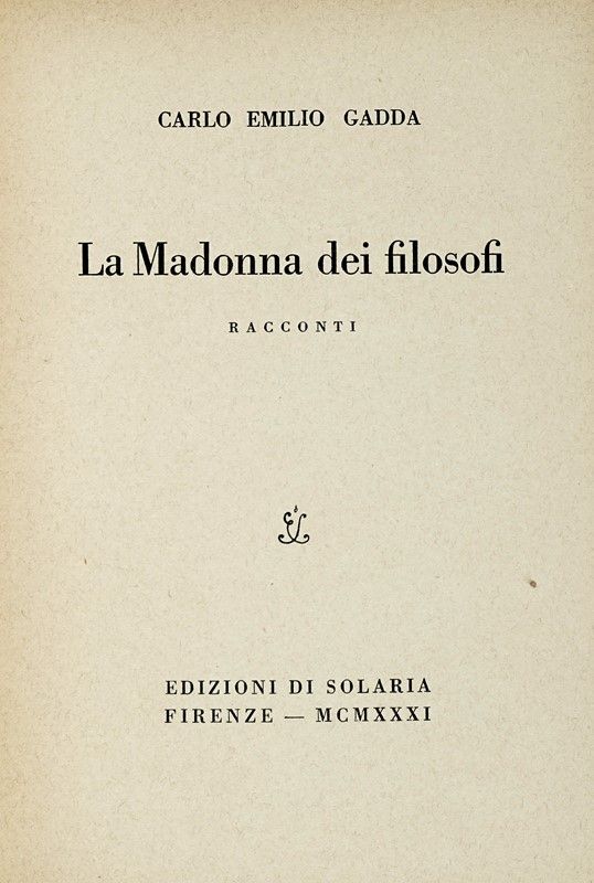 In-8° (mm 195x130). Pagine 167, [9]. Esemplare in barbe, in buone condizioni. Brossura editoriale con titoli in rosso al piatto e al dorso, internamente staccata, ma ben conservata, salvo qualche macchiolina e un piccolo strappetto alla cerniera posteriore.