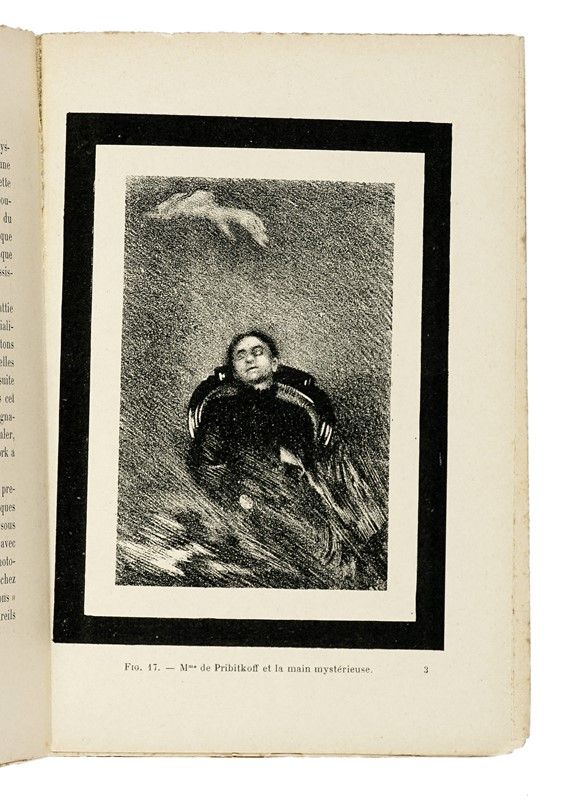 In-8° (mm 198x135). Con numerose illustrazioni in bianco e nero di scene spiritiche e apparizioni, anche a piena pagina, nel testo. Alcuni fascicoli allentati, ma esemplare ben conservato nelle sue barbe. Brossura originale con titoli ai piatti. Fioriture sparse e una mancanza marginale al piatto posteriore.