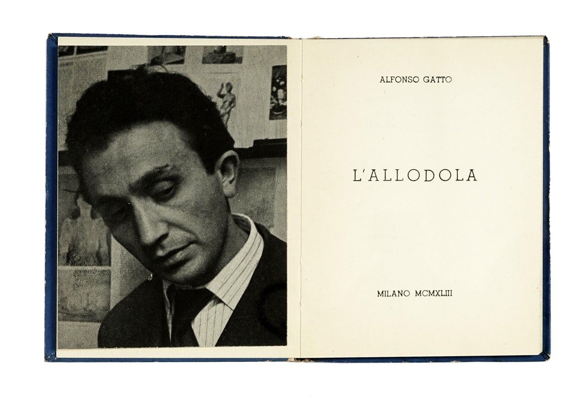 In-32° (mm 100x80). Pagine [30]. Con, sciolto, il ritratto fotografico in bianco e nero dell’Autore. Brossura originale blu con sovracoperta risvoltata a tamburo. Staccato, ma presente e ben conservato, il piatto posteriore della sovraccoperta. Minimi difetti e mancanze alle cerniere anche di quello anteriore, ma nel complesso buona conservazione. Uno dei 215 esemplari in numeri arabi, su carta uso mano, su una tiratura complessiva di 250 copie. SI AGGIUNGE: Id., Poesie. Milano: Panorama, 1939.