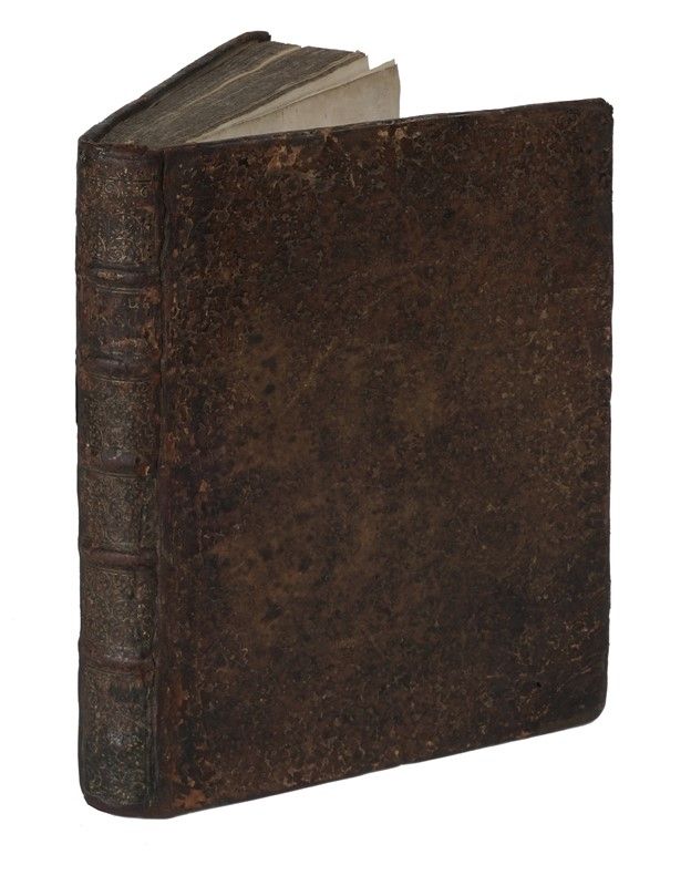 In-4° (mm 236x172). Pagine: [16], 471, [1]. Splendide testatine e finalini xilografici, carte occasionalmente brunite in modo pallidissimo, nel complesso buona copia genuina in piena bazzana coeva (decorazioni al dorso sbiadite, piccoli restauri, leggere abrasioni), tagli spruzzati ed eccezione dei fascicoli A-D.