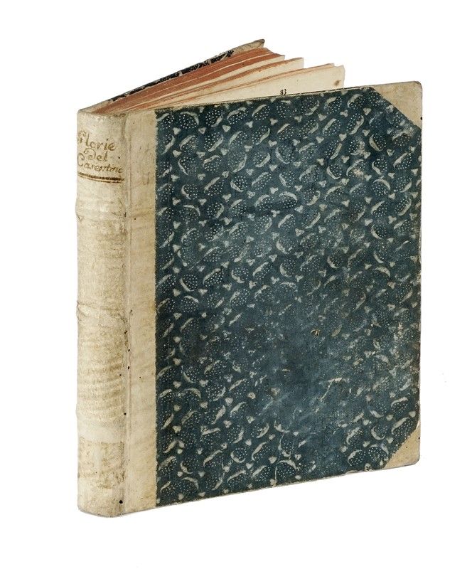 In-4° (mm 203x150). Pagine 54, [2] bianche. Fregio xilografico al frontespizio. Bianca la carta G4. Fioriture e gore sparse. LEGATO CON: Id., [Giunta al]la prima parte delle glorie del Clusentino... In Firenze: nella stamperia di S.A.S. alla Condotta, 1687. Pagine 206, [2]. Fregio xilografico al frontespizio; testatine e capilettera in legno. Mancanze, con perdite di testo, al margine superiore del frontespizio e della carta A4, e senza perdite alle carte B4 e C1. Maldestri restauri marginali, con nastro adesivo, alle carte C4, D2 e D3; fioriture sparse ed altre minime mende. Legatura successiva in mezza pergamena, con punte e piatti in carta decorata; titoli manoscritti al dorso e tagli rossi. Lieve strappo, con mancanza reintegrata, al foglio di guardia anteriore. Lievi segni di usura e piccoli forellini di tarlo al dorso. Nota di possessi manoscritta al frontespizio ed ex-libris cartaceo al contropiatto anteriore.