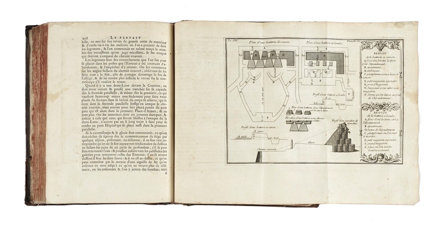 In-4° (mm 236x180). Pagine [10], 346, [2] con 1 antiporta e 42 tavole più volte ripiegate; il tutto inciso in rame fuori testo. Frontespizio in rosso e nero; belle testatine in rame. Esemplare diffusamente arrossato, con fioriture sparse. Lehatura coeva in pelle maculata, con fregi e titoli in oro al dorso a 5 nervi, sguardie marmorizzate e tagli rossi. Abrasioni a piatti e dorso.