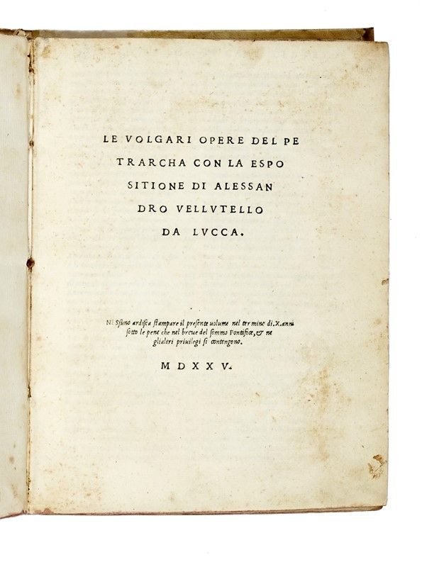 In-4° (mm 202x150), in 2 parti: carte: [12], 201 [3]; [58]. Con una mappa xilografica a doppia pagina della Vaucluse e dintorni (leggerissimamente rifilata al margine superiore). Testo in corsivo. Cerniera anteriore quasi del tutto slegata, carte un po' ingiallite e con fascicoli pallidamente bruniti, ultimo fascicolo con pallide macchie all'angolo superiore esterno, margine superiore un po' corto e corpo del testo un po' slegato. In pergamena flessibile coeva con titolo posteriormente manoscritto al dorso, tagli rosa.