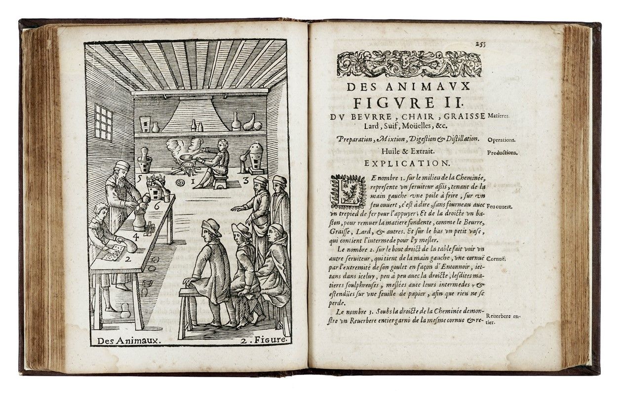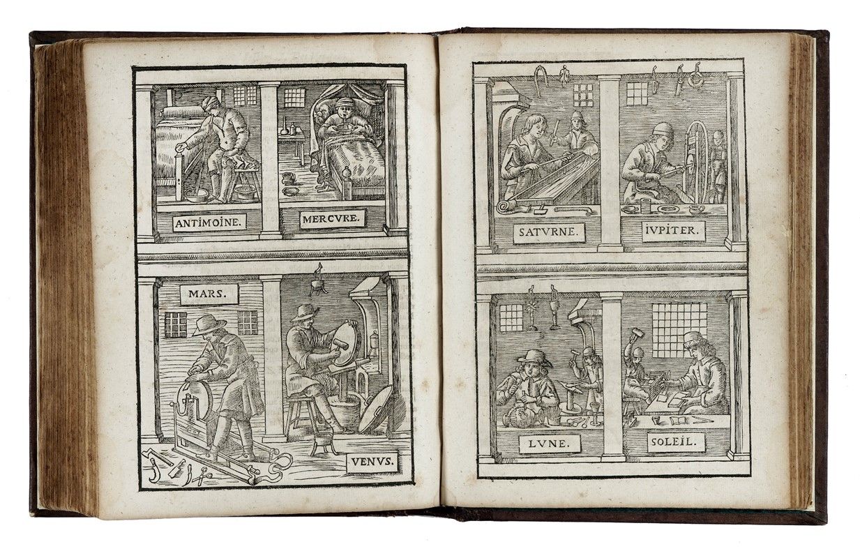 In-4° (mm 226x174). Pagine: [10], 626, [10]. Frontespizio xilografico, 36 incisioni xilografiche a piena pagina nel testo (una a doppia pagina), una tavola a doppia pagina su brachette e due tabelle a doppia pagina fuori testo. Frontespizio controfondato e con piccole mancanze, carte pallidamente brunite, occasionali fioriture e macchiette, occasionali lavoretti di tarlo al margine interno ed esterno che sfiorano il testo in un paio di occasioni, qualche piccolo restauro marginale. Mezza pelle ottocentesca (dorso stanco), sguardie rinnovate.