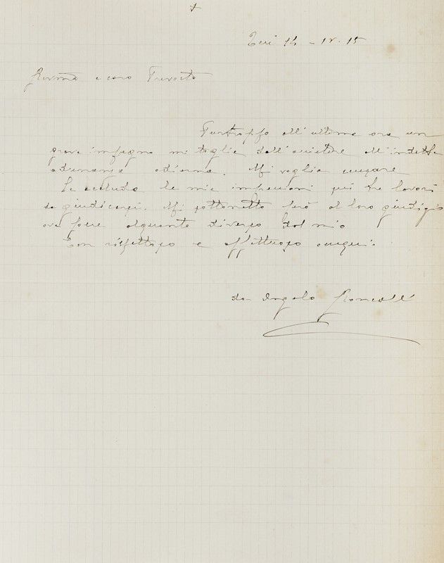 Manoscritto a inchiostro nero su carta a quadretti con filigrana. 1 pagina scritta al recto. Dimensioni: 270x215 mm.