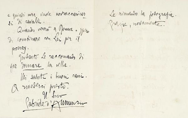D'Annunzio alla Capponcina, l'amata Nike e i cavalli, Non datata, ma scritta tra il 1903 ed il 1906.