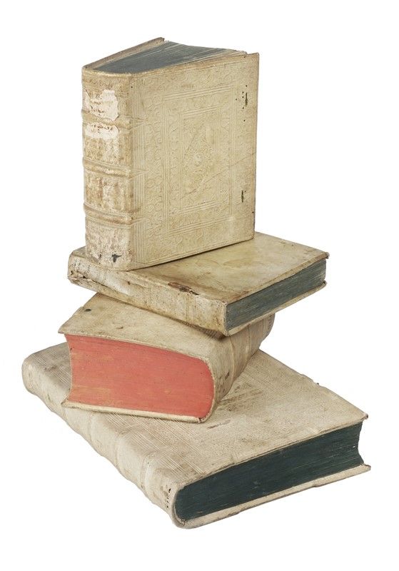 Compongono il lotto: 1) Crusius, Opuscula varia politico-juridico-historica... Mindae: Impensis Jacobi Köhleri, 1668, rilegato con altre 4 opere, in-4° piccolo, carte arrossate, in pelle di scrofa coeva decorata a secco su assicelle di legno, tagli azzurri; 2) Hoppe, Commentatio succinta ad Institutiones Justinianeas... Francofurti: Impensis Jeremiae Schrey, & Joh. Christ. Hartmann, 1698, in-4° piccolo, carte arrossate, in pelle di scrofa coeva decorata a secco su assicelle di legno, tagli rossi; 3) De beneficio inventarii [...] authoribus magni nominis iurisconsultis... Genevae: Sumptibus Ioannis Antonii & Samuëlis De Tournes, 1672, in-folio in pelle di scrofa coeva decorata a secco su assicelle di legno, tagli azzirri; 4) Peregrino, Resolutionum forensium de jure et privilegi fisci, libri quatuor... Coloniae Agrippinae: Sumpt. Andreae Bingii Bibliopolae, 1663, in-4° piccolo in pergamena rigida coeva, brunito, tagli azzurri. Non collazionati.
