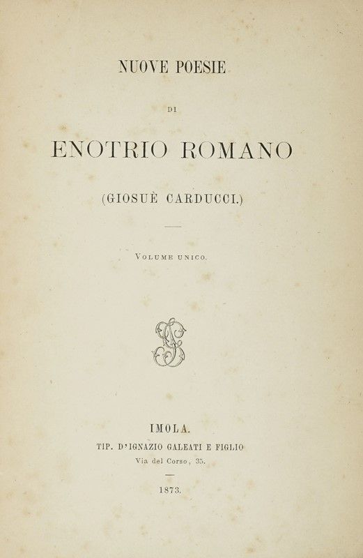In-8° (mm 190x125). Pagine [4], 132. Esemplare fortemente allentato, con lievi fioriture sparse. Brossura editoriale con titoli entro cornice tipografica al piatto e al dorso. Piatto anteriore staccato, dorso parzialmente assente e piccole fioriture. Iscrizione manoscritta da parte dell'autore al piatto anteriore. Copia da studio, non passibile di restituzione.