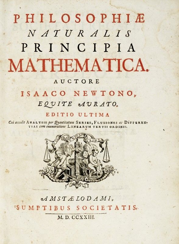 In-4° (mm 263x195). Pagine: [28], 484, [8]. Assente la seconda parte annunciata al fontespizio. Frontespizio in rosso e nero con vignetta calcografica. Con una tavola ripiegata e numerosissimi diagrammi nel testo. Carte arrossate (in alcuni punti meno, in altri di più), trascurabile lavoro di tarlo al margine inferiore delle ultime carte. Pergamena rigida coeva con titolo anticamente manoscritto al dorso, tagli spruzzati di rosso.