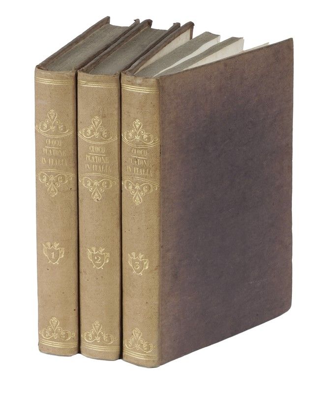 3 volumi in- (mm 205x125). 1 tavola con la pianta dell'antica città di Taranto più volte ripiegata fuori testo. Fioriture sparse, altrimenti buona copia. Legatura in piena tela con impressioni a secco e titoli in oro al dorso. Tracce d'uso.