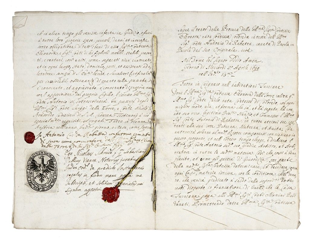 Manoscritti pergamenacei a inchiostro bruno. Testi in latino e italiano. Conservati 4 sigilli in piombo, alcuni non più legati ai fogli. Dimensioni varie (la più grande 2000x47 mm).