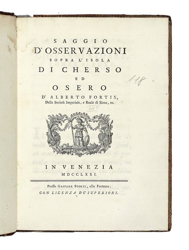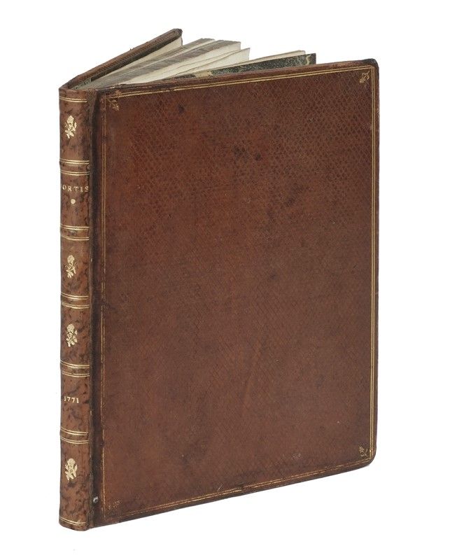 In-4° (mm 240x175). Pagine [2] bianche, [6], 169, [3] + 4 carte di tavole incise in rame fuori testo, delle quali 1 più volte ripiegata. Lievi fioriture sparse, ma nel complesso ottimo esemplare. Legatura in piena pelle, con cornici di filetti dorati al piatto, fregi e titoli in oro al dorso a 5 nervetti; tagli e sguardie marmorizzate. Minime mancanze e difetti alle cerniere e, marginalmente, ai piatti.