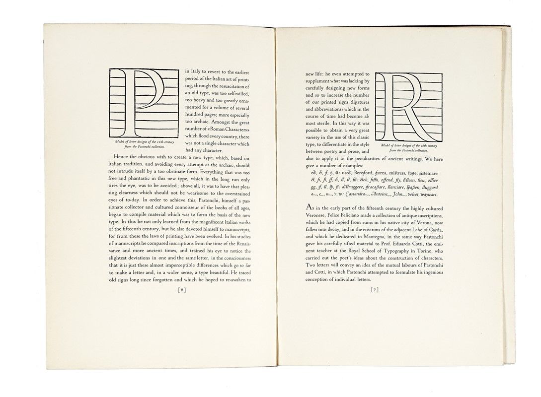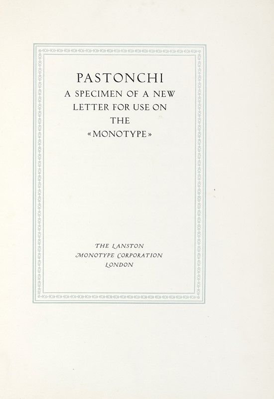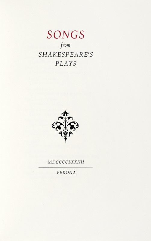 In-8° (mm 265x175). Ottima copia in barbe. Legatura editoriale in mezza pergamena con piatti in tela decorata, titoli dorati al dorso. Custodia in cartonato. Uno dei 200 esemplari in numeri romani su carta a mano Pescia destinati all'Italia, su una tiratura complessiva di 310 copie. SI AGGIUNGE: Pastonchi Francesco, A Specimen of a new Letter for Use on the Monotype. [Verona: Officina Bodoni], 1928. In-4° (mm 290x200). Rare fioriture e lievi bruniture marginali, altrimenti buona copia. Legatura editoriale in piena tela con titoli in oro al piatto e al dorso. SI AGGIUNGE: Browning Elisabeth Barrett, Sonnets from the portuguese. [Montagnola: Officina Bodoni, 1925].