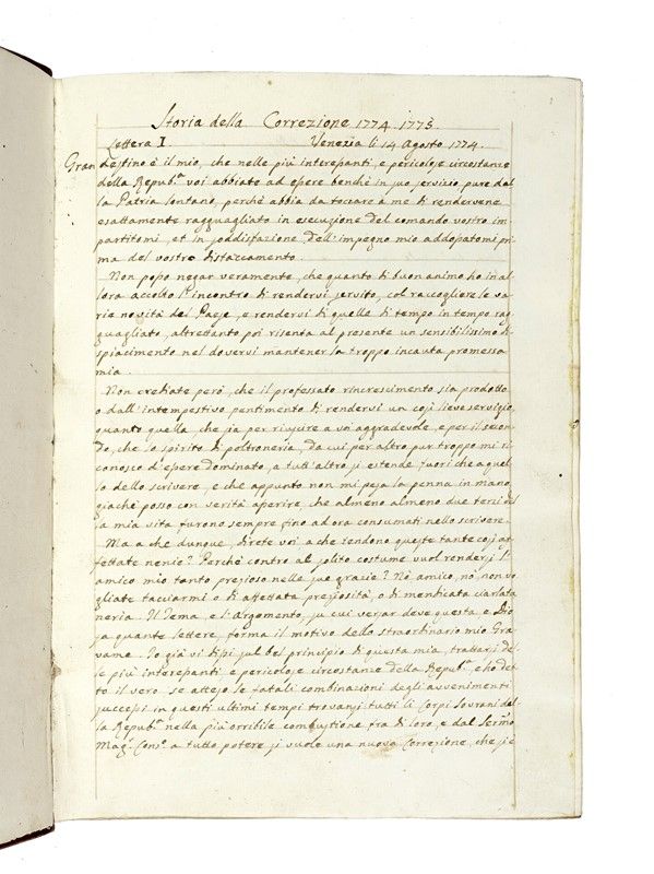 Manoscritto a inchiostro bruno. Carte [127], 157, [3 bianche]. Non è presente il primo indice (ad apertura di volume), mentre è conservato il secondo. Tagli gialli. Carta pesante, molto ben conservata. Legatura in pelle coeva. Dimensioni: 310x220 mm.