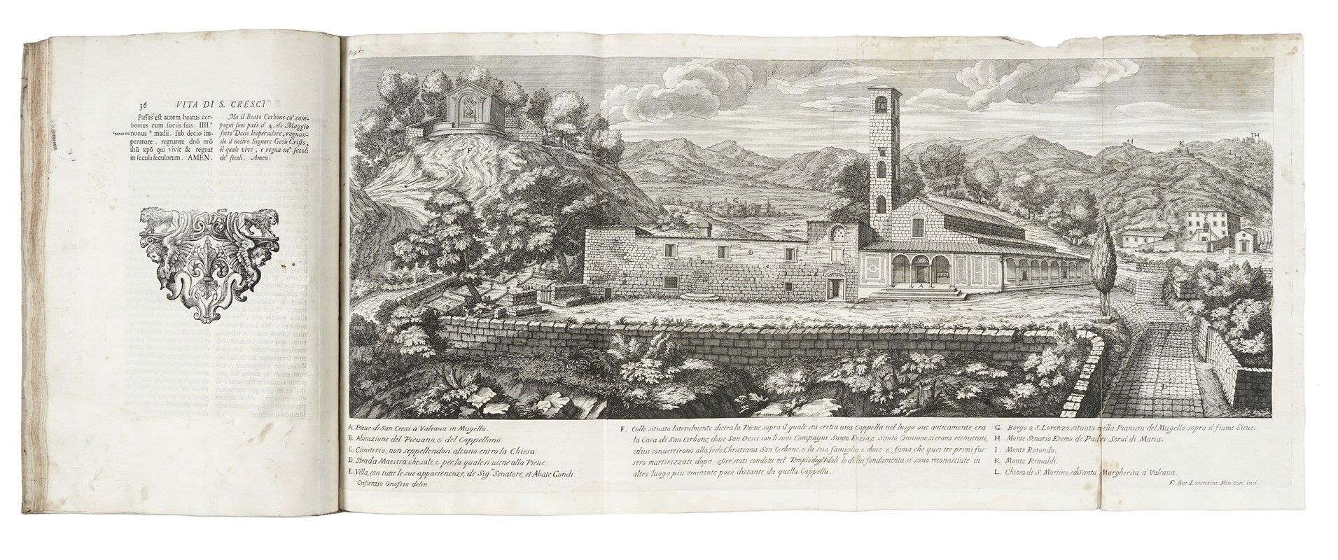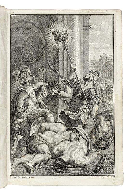 In-folio (mm 368x243). Pagine: [14], XXVII, [3], 180, [2]. Segnatura nella variante B, assente V6 bianca. Illustrato da [8] tavole calcografiche, di cui una ripiegata. Splendida antiporta incisa da Theodor Verkruys su disegno di Tommaso Redi, seguita da frontespizio con emblema calcografico dell’Accademia della Crusca, da ritratto del dedicatario Cosimo III de’ Medici (1642-1723), inciso da Arnold Van Westerhout su disegno di Francesco Petrucci, grande testatina calcografica con armi medicee, ed altre testatine e vignette calcografiche. Alone al margine esterno dei primi fascicoli, strappo lungo una piegatura della tavola ripiegata, e atre trascurabili tracce del tempo. Piena pergamena rigida coeva (tracce d'uso e del tempo), dorso a nervi con tassello in marocchino rosso.