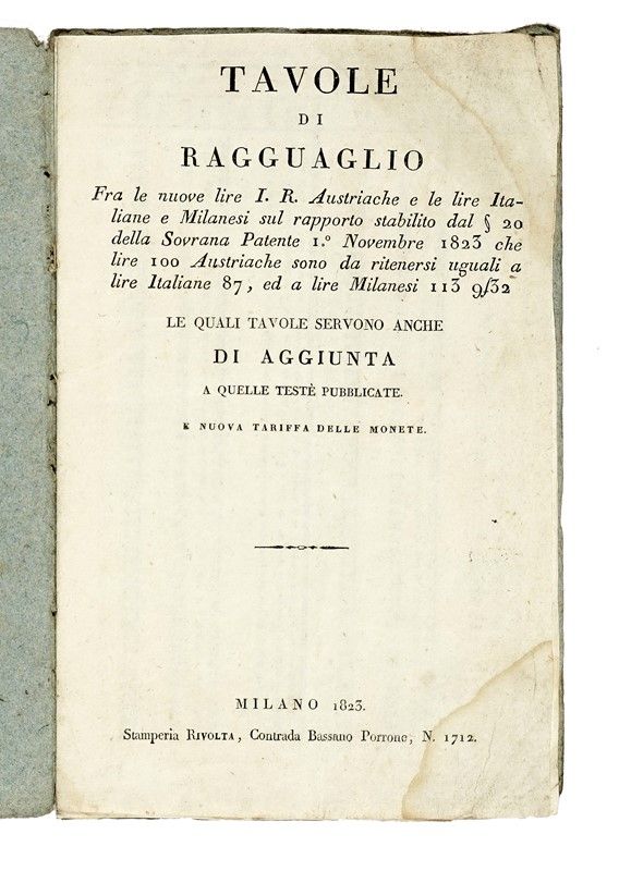 Milano, Stamperia Rivolta, 1823.