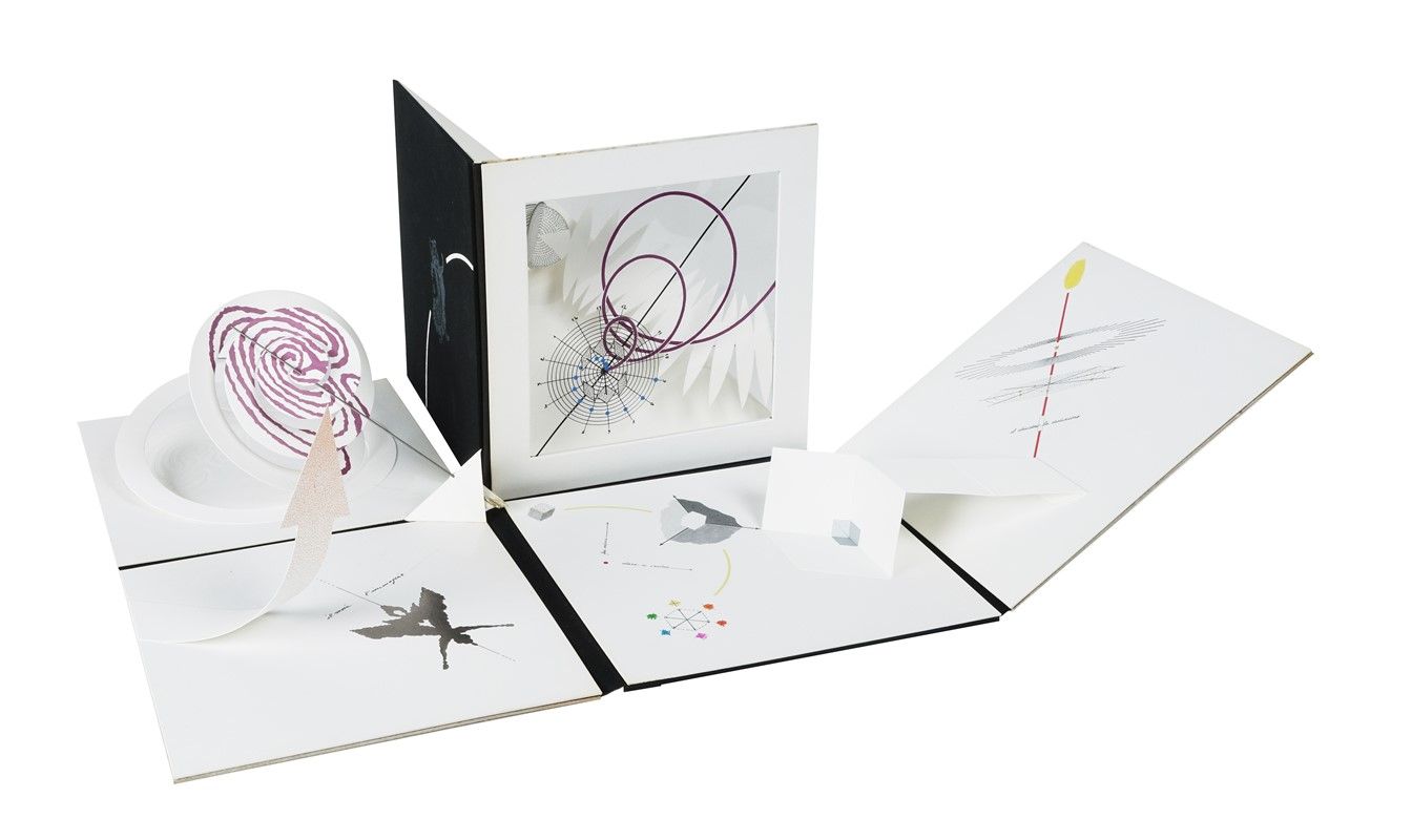 In-8° carré (mm 250x250). Custodia in piena tela editoriale illustrata al piatto anteriore contenente tre splendidi pop up multimaterici. Tracce di precedente incollaggio ai cartoncini di supporto, uno leggermente staccato, ma nel complesso buona copia ben conservata entro cofanetto editoriale coordinato con titoli su tassello al piatto. Tracce di polvere. Uno dei 100 esemplare in numeri arabi, su una tiratura di 110 copie numerate e firmate al dorso.