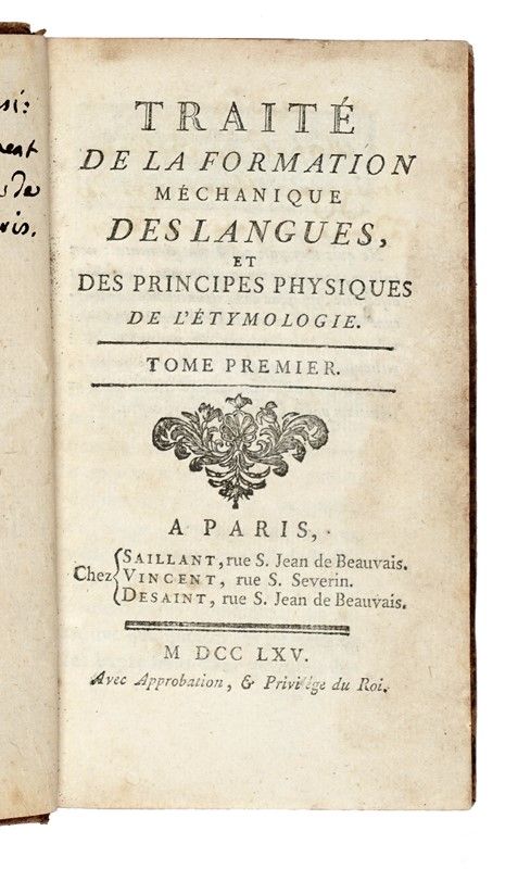 2 volumi in-12° (mm 165x95). Con, complessivamente, 9 tavole fuori testo, di cui 3 ripiegate. Lievi fioriture sparse, altrimenti buona copia. Legatura coeva in vitello maculato comn titoli e fregi su tassello al dorso e 5 nervi. Abrasioni al dorso e ai piatti, forellini di tarlo e mancanze alle cuffie. SI AGGIUNGE: Pluche Nöel Antoine, La mecanique des langues, et l'art de les enseigner. A Paris: chez la veuve Estienne & fils, 1751.