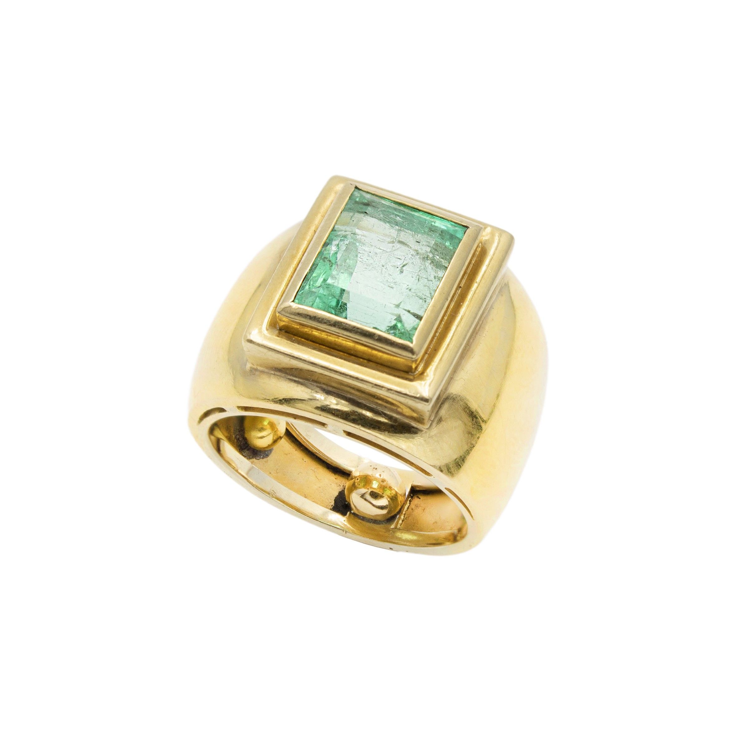 Anello in oro giallo 18kt con smerldo naturale