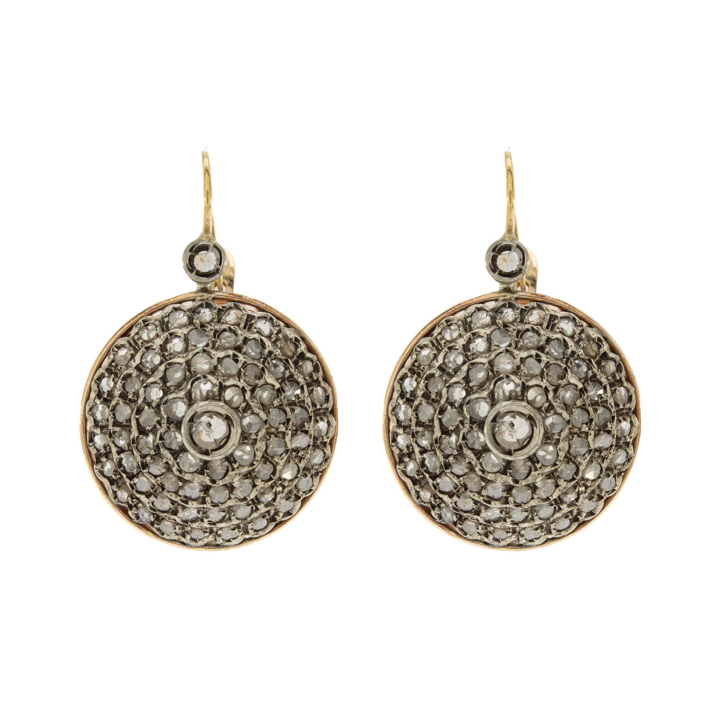 Antichi orecchini a monachina in oro 12kt argento e rose di diamante