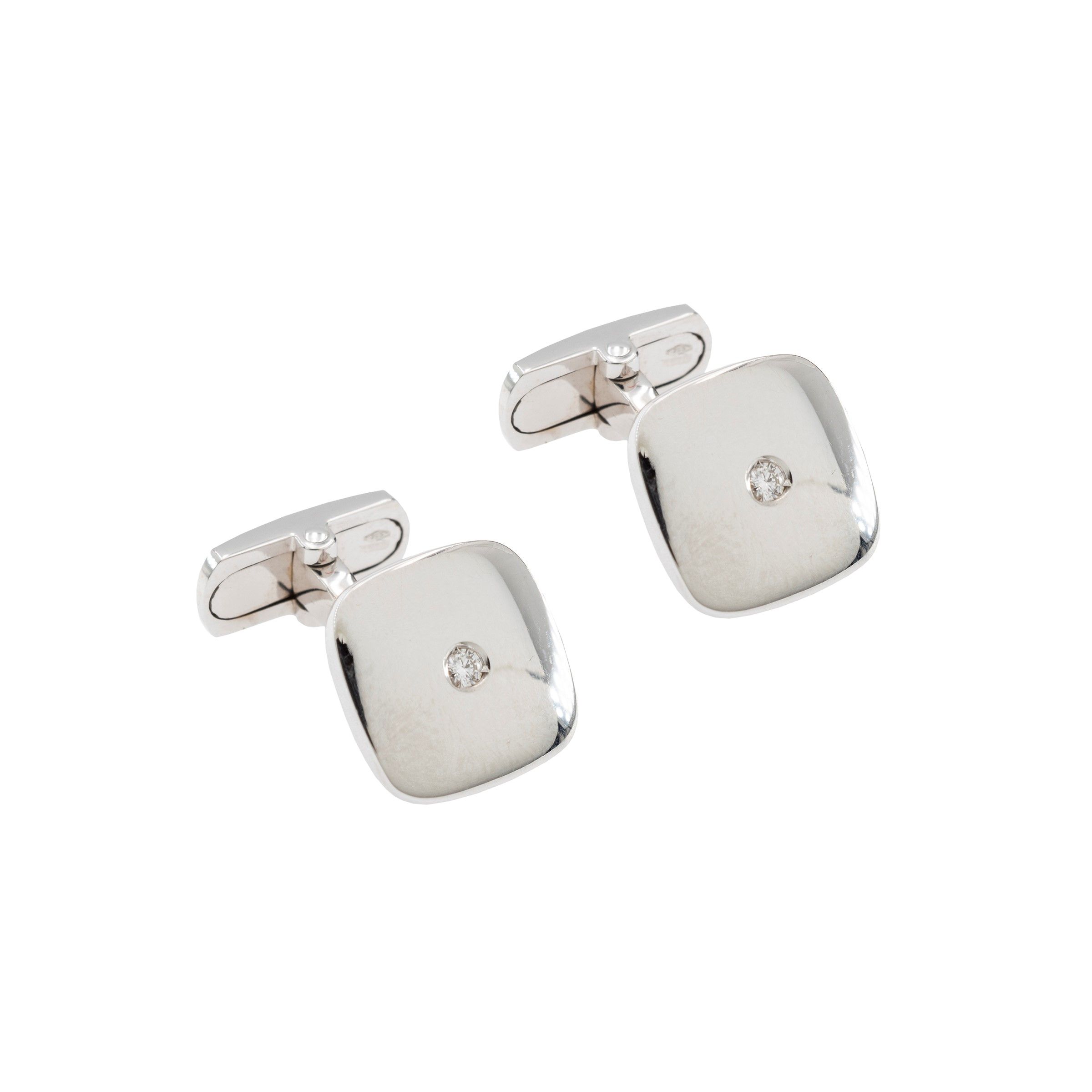 Gemelli in oro bianco 18kt centrati da due diamanti