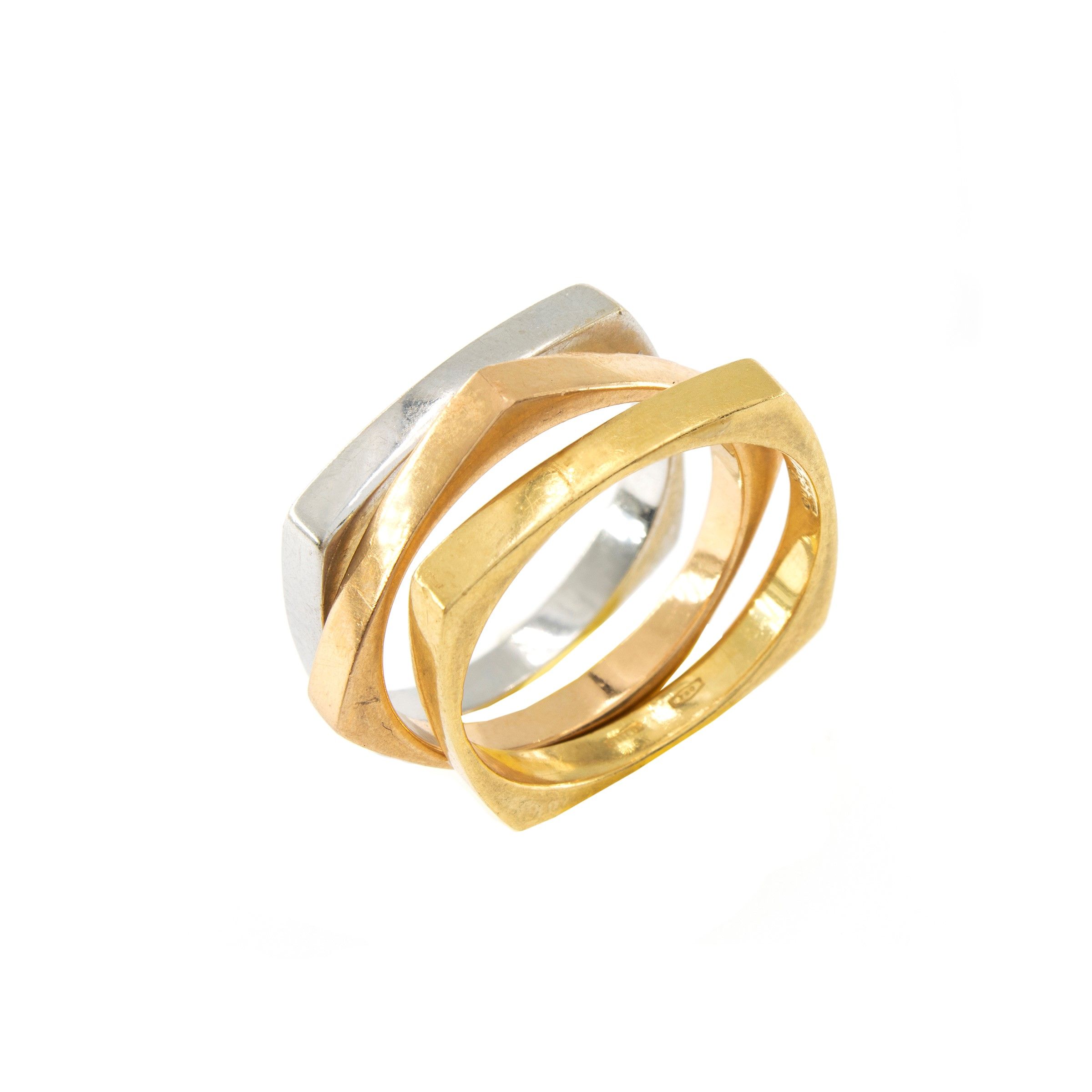 Gucci tre fedi squadrate in oro a tre colori 18kt