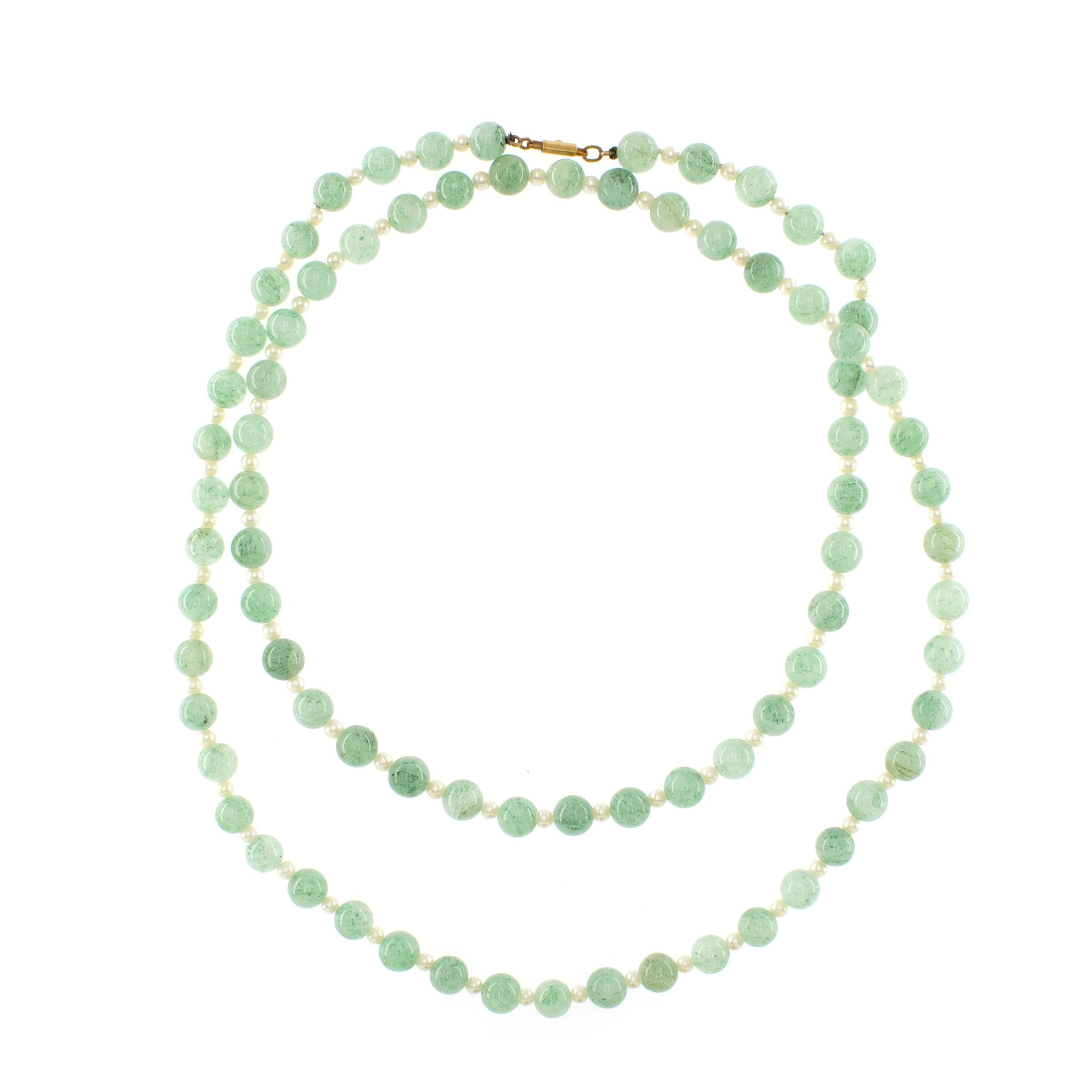 Lunga collana ad un filo di sfere di amazzonite e perline