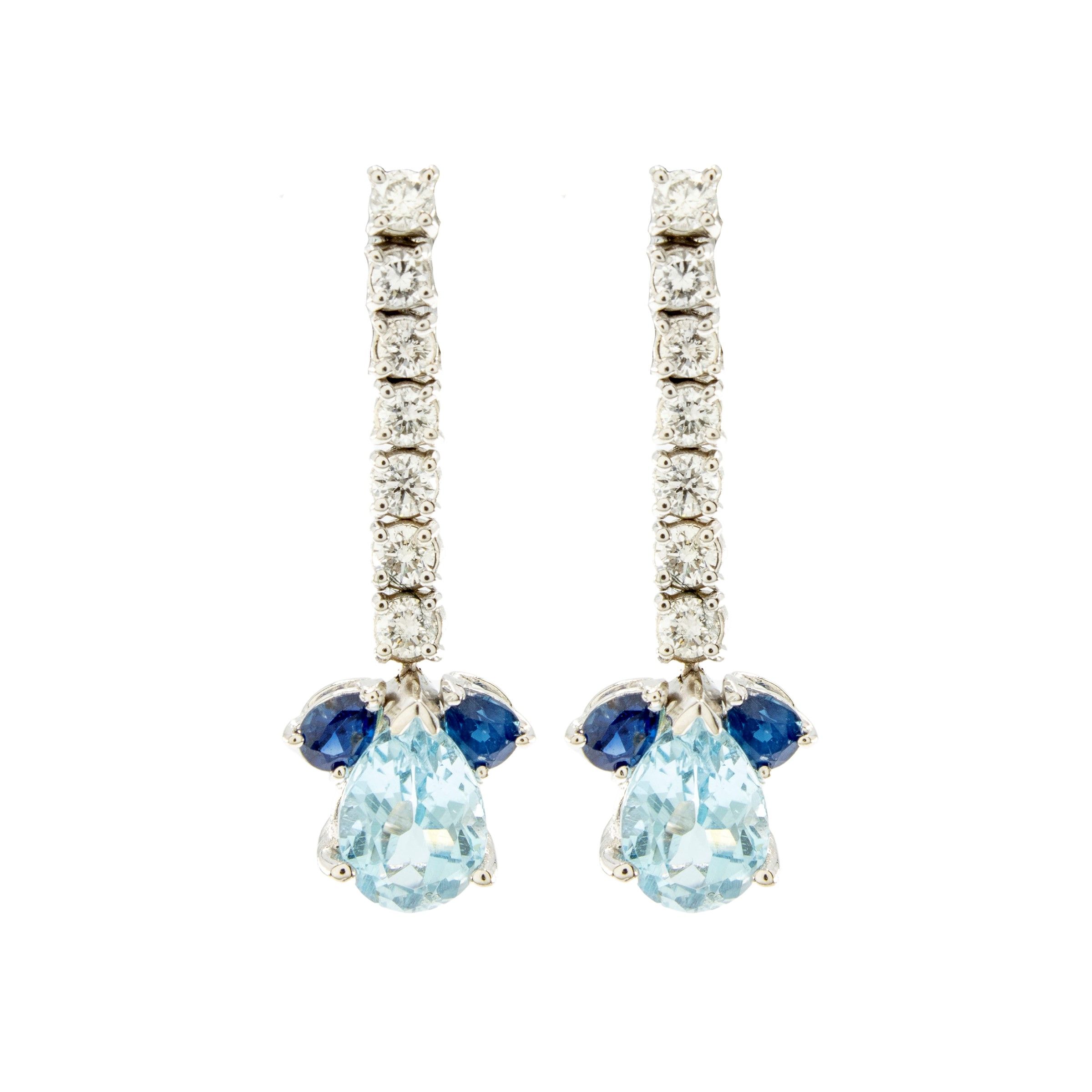 Orecchini pendenti in oro bianco 18kt diamanti, acquamarine e zaffiri