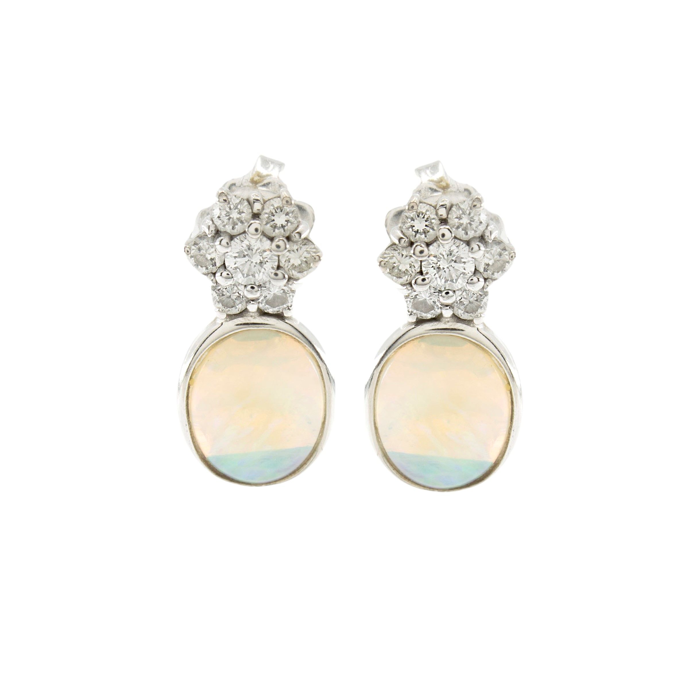 Orecchini pendenti in oro bianco 18kt opali arlecchino e diamanti