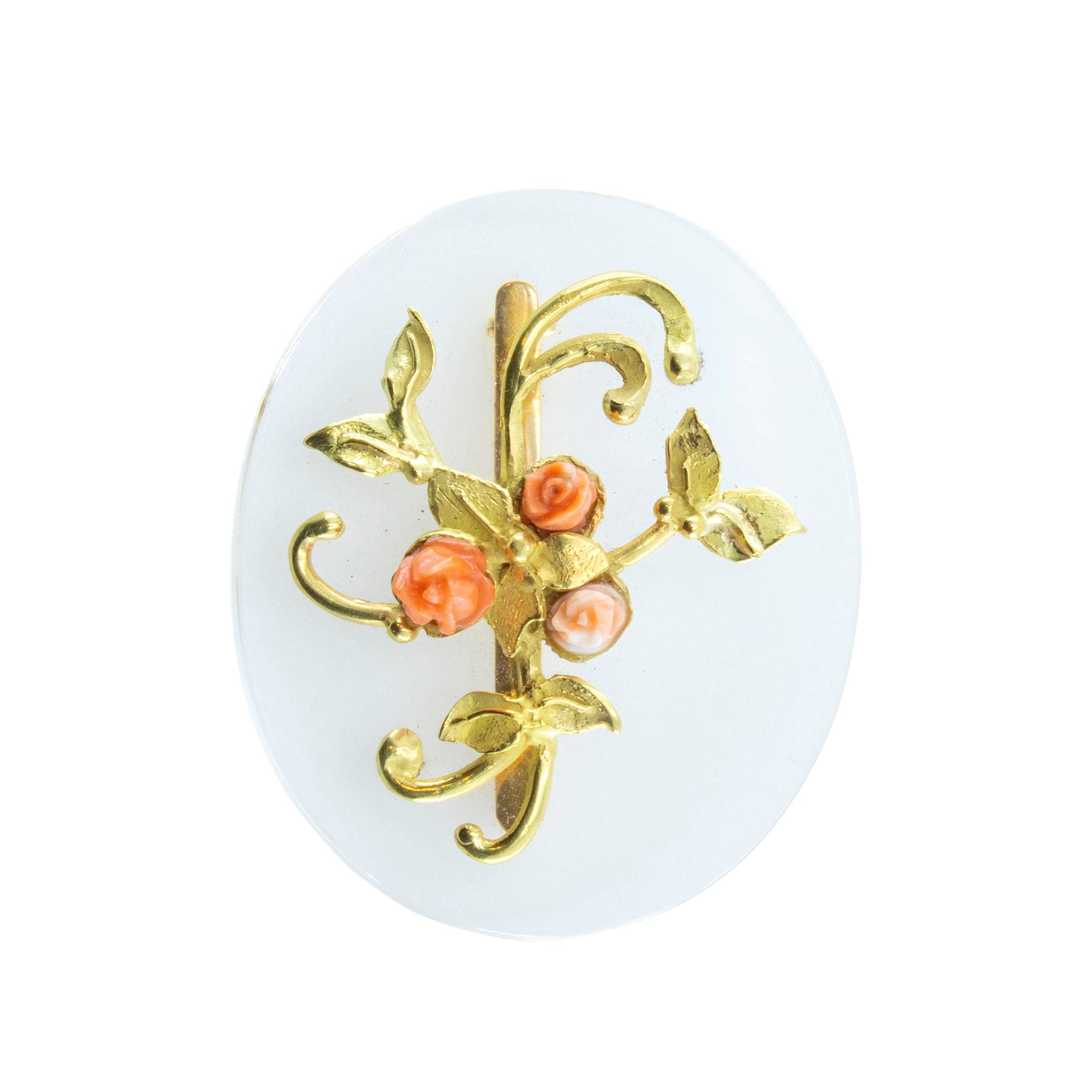 Spilla ramage floreale in oro giallo 18kt e rose di corallo