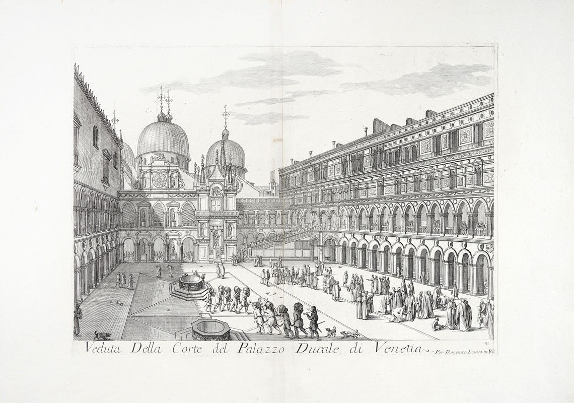 Acquaforte e bulino. mm 360x494. Foglio: mm 498x690. Da Il Gran Teatro di Venezia ovvero raccolta delle principali vedute e pitture che in essa si contengono diviso in due tomi, pubblicato per la prima volta nel 1717 dal Lovisa, editore attivo in Venezia nella prima metà del XVIII secolo.