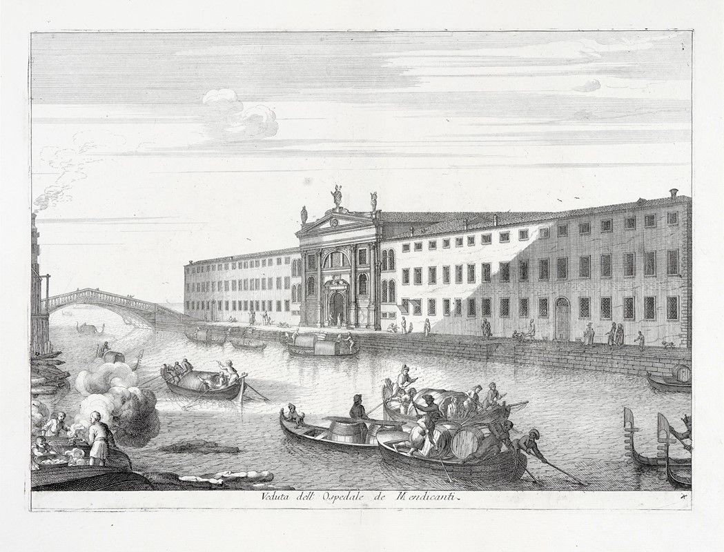 Acquaforte e bulino. mm 358x493. Foglio: mm 425x540. Da Il Gran Teatro di Venezia ovvero raccolta delle principali vedute e pitture che in essa si contengono diviso in due tomi, pubblicato per la prima volta nel 1717 dal Lovisa, editore attivo in Venezia nella prima metà del XVIII secolo.