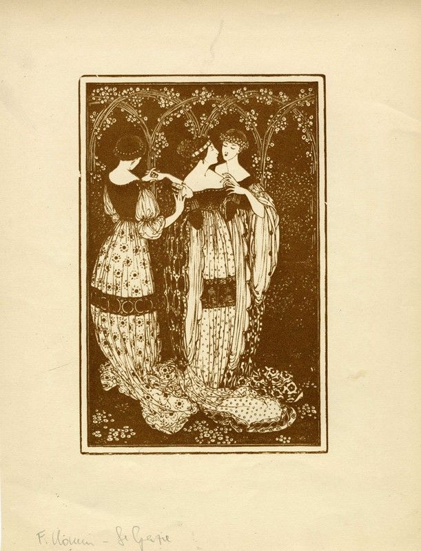 Xilografia. mm 200x130. DIRANI, 29. Nome d'artista iscritto a matita in basso a sinistra. Opera conosciuta anche con il titolo di Le grazie e Primavera. Foglio estratto da Xilografia del 1925.