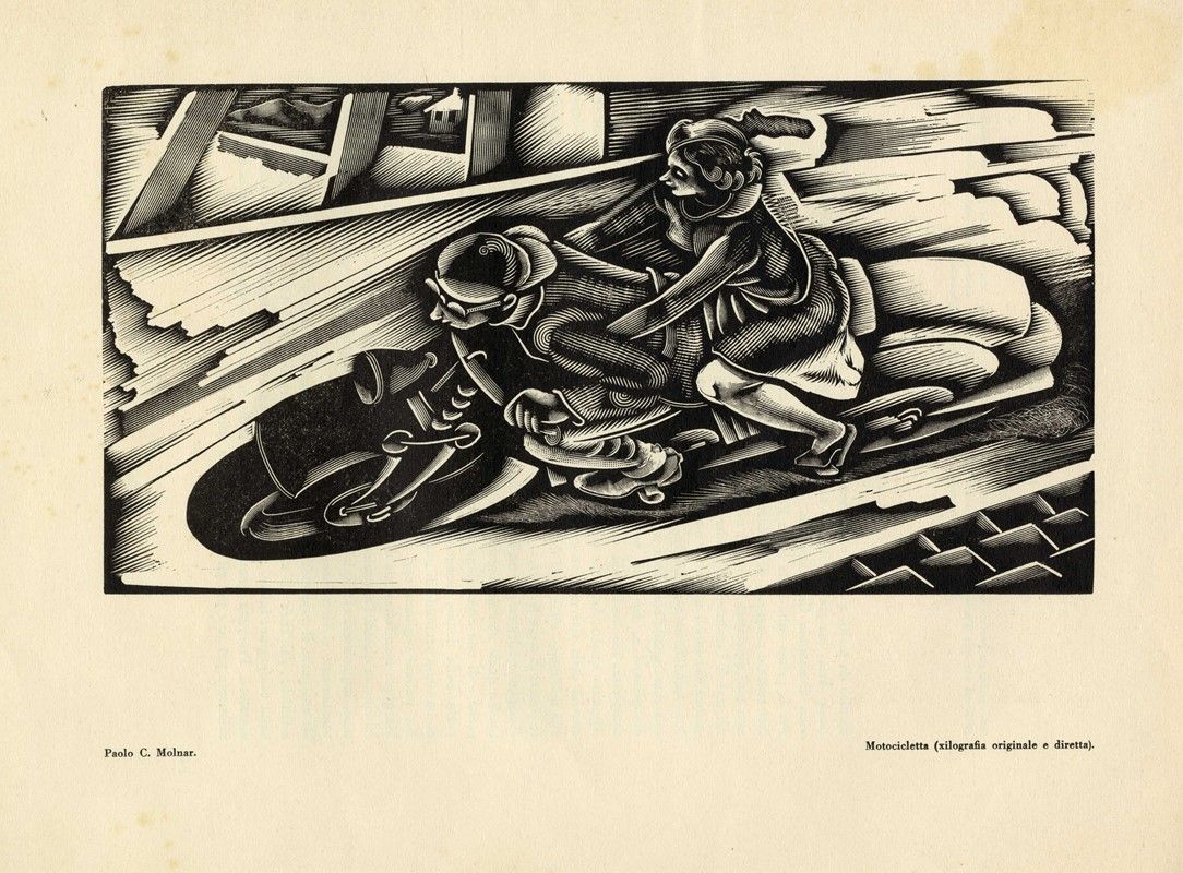 Raccolta di 14 xilografie estratte da L'Eroica Anno XIII. mm 140/260x90/255. Fogli: mm 190/325x160/240. Molte opere presentano la firma a stampa lungo i margini della lastra. Compongono il lotto le opere: Morini A., Pierrot; Disertori B., Gubbio; Morbiducci P., Raccolta di 4 incisioni (Compresa la doppia copertina); Mantelli E., Raccolta di 2 incisioni; Molnar P. C., Motocicletta ed altri.