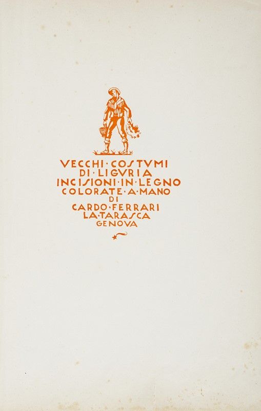 Raccolta di 45 xilografie. mm 100/500x90/64. Fogli: mm 195/760x235/620. La quasi totale collezione presenta firme, titoli e date in lastra o a matita lungo i margini delle opere. Parte del lotto è composta da fogli de L'Eroica sfusi ed un fascicolo scompleto del 1910. Tra gli artisti che compongono il lotto segnaliamo: Barbieri Gino, Disertori Benvenuto, Sergi Sergio, Marussig Piero, Quilici Buzzacchi Mimi, Zetti Italo, Giuliani Attilio e Dessy Stanis. SI AGGIUNGE: Ferrari C., Vecchi costumi di Liguria. 1936. Raccolta di 10 xilografie in coloritura conservate entro album in tela.