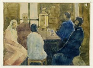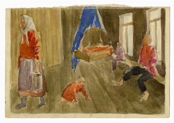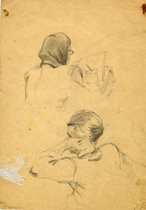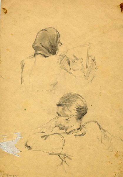 Matite e acquerelli su carta. mm 137/373x205/290. Firmati e datati a penna a sfera blu lungo i margini o al verso del supporto. SI AGGIUNGE: Anonimo del XX secolo, Uomo di profilo. Matita su carta. mm 373x260. Firmato in basso a destra. Ulteriori schizzi di studio a matita sul verso del foglio.