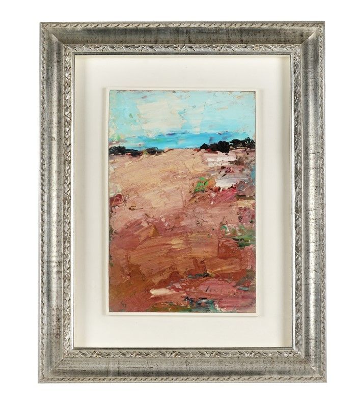 Olio su tavola. cm 41x26. Firma scavata nel colore in basso a destra. Controfirmata e titolata al verso. Opera accompagnata da autentica su fotografia con firma d'artista a pennarello blu.