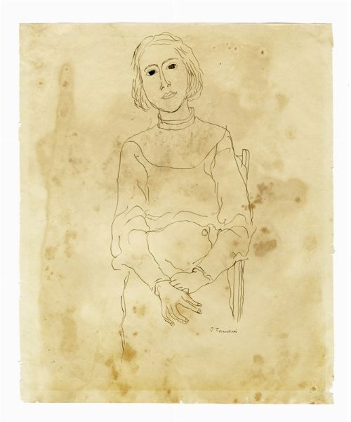 Penna e inchiostro di china bruno su velina filigranata. mm 260x220. Firmata in basso a destra.