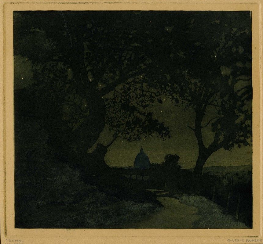 Acquaforte. mm 190x205. Foglio: mm 235x240. Firmata e datata a matita in basso a destra. Titolata a matita in basso a sinistra. Iscritto: "Il Comm: Rodolfo Mircacchi è grato" a matita in basso a destra sul passe-partout.