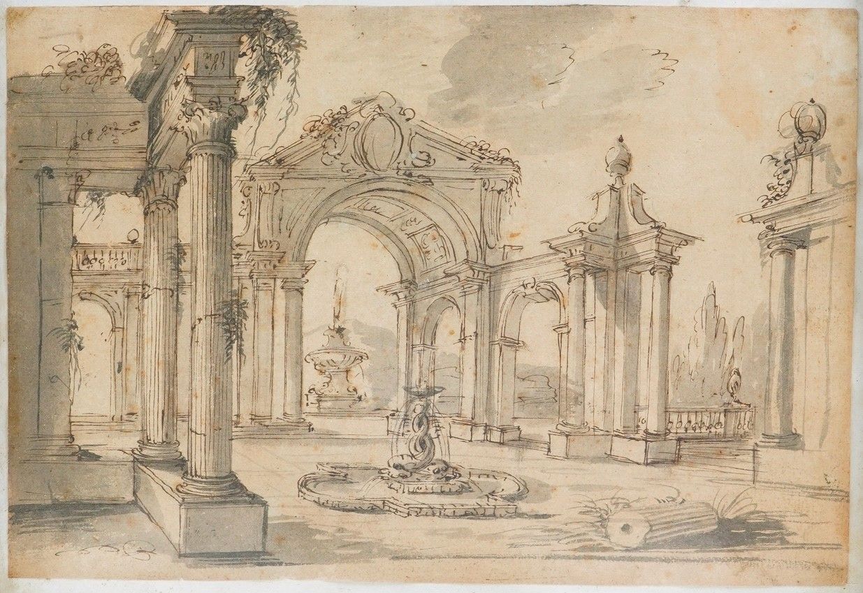 penna, inchiostro bruno e acquerello grigio su carta, Largh. 250 - Alt. 170 mm