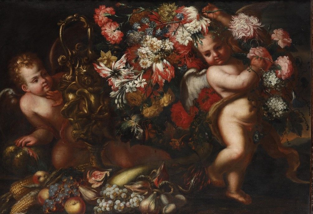 Nei modi della pittura della fine del XVIII secolo Composizioni di fiori e frutti [..]