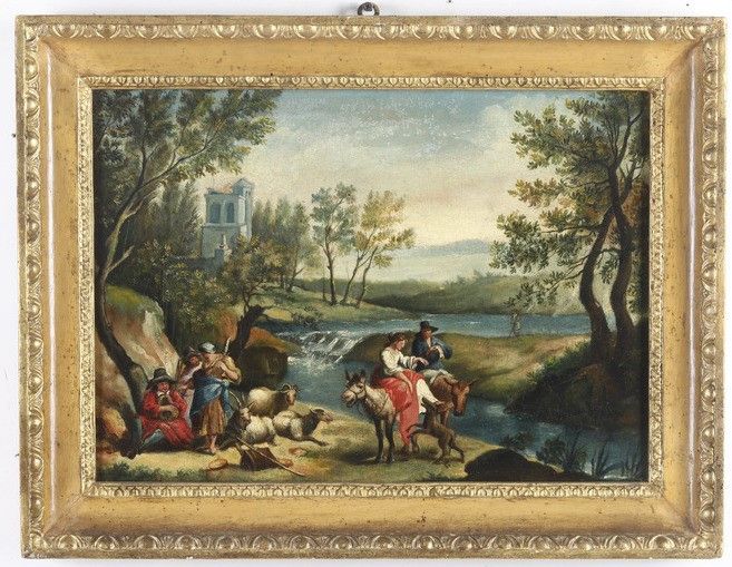 Scuola del XIX secolo Paesaggi con pastori e contadini