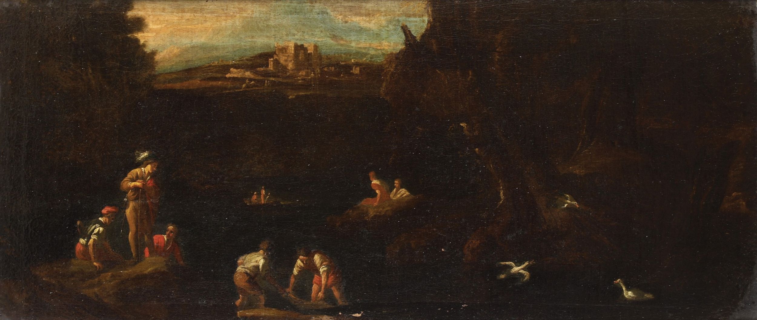 Scuola del XVIII secolo Paesaggio con pescatori e contadini