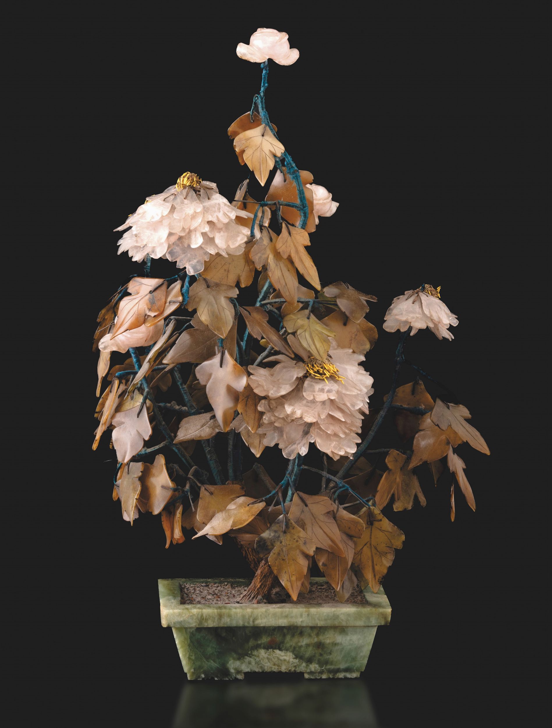 Figura di Bonsai in giada e pietra dura, Cina, XX secolo