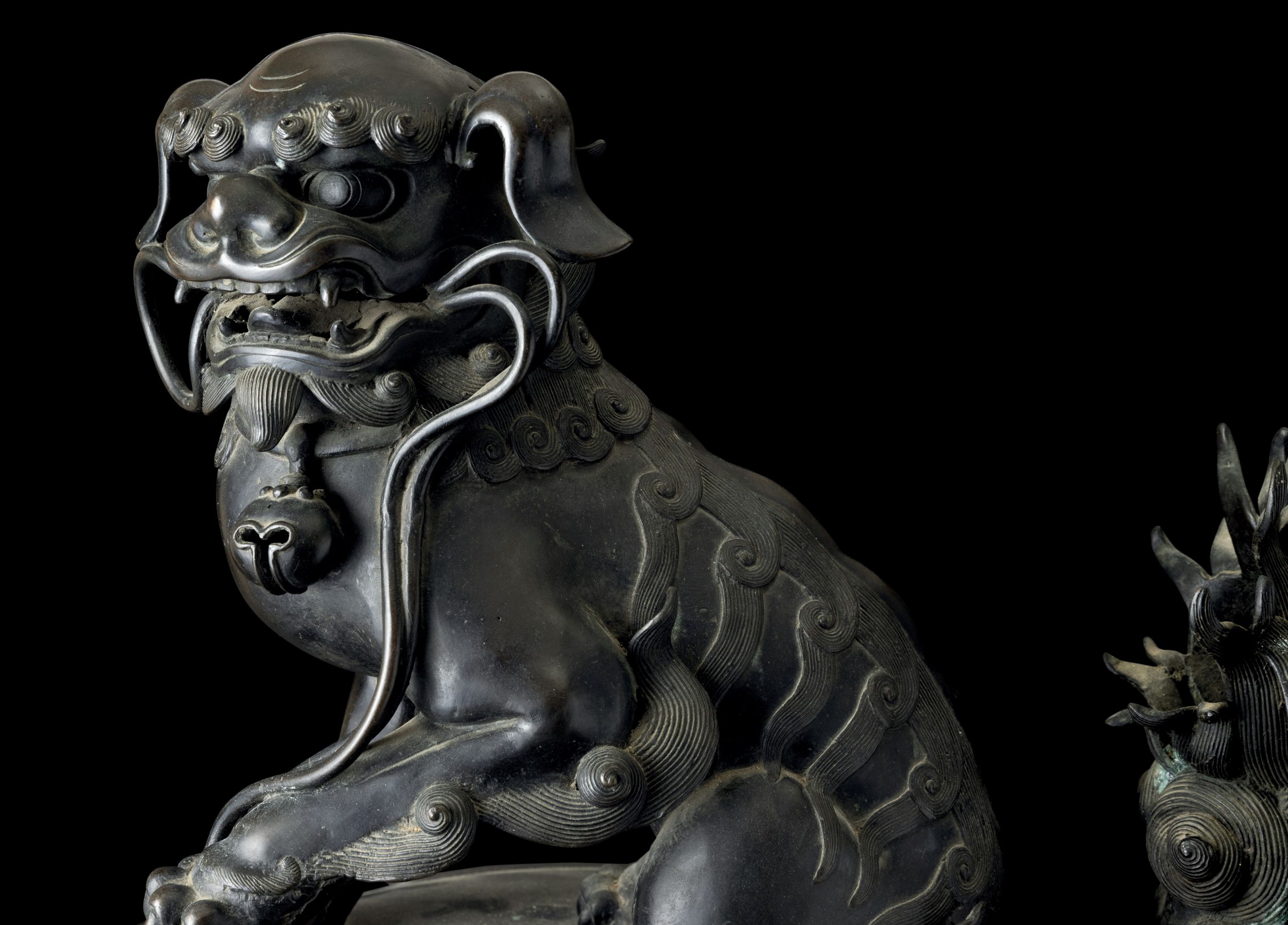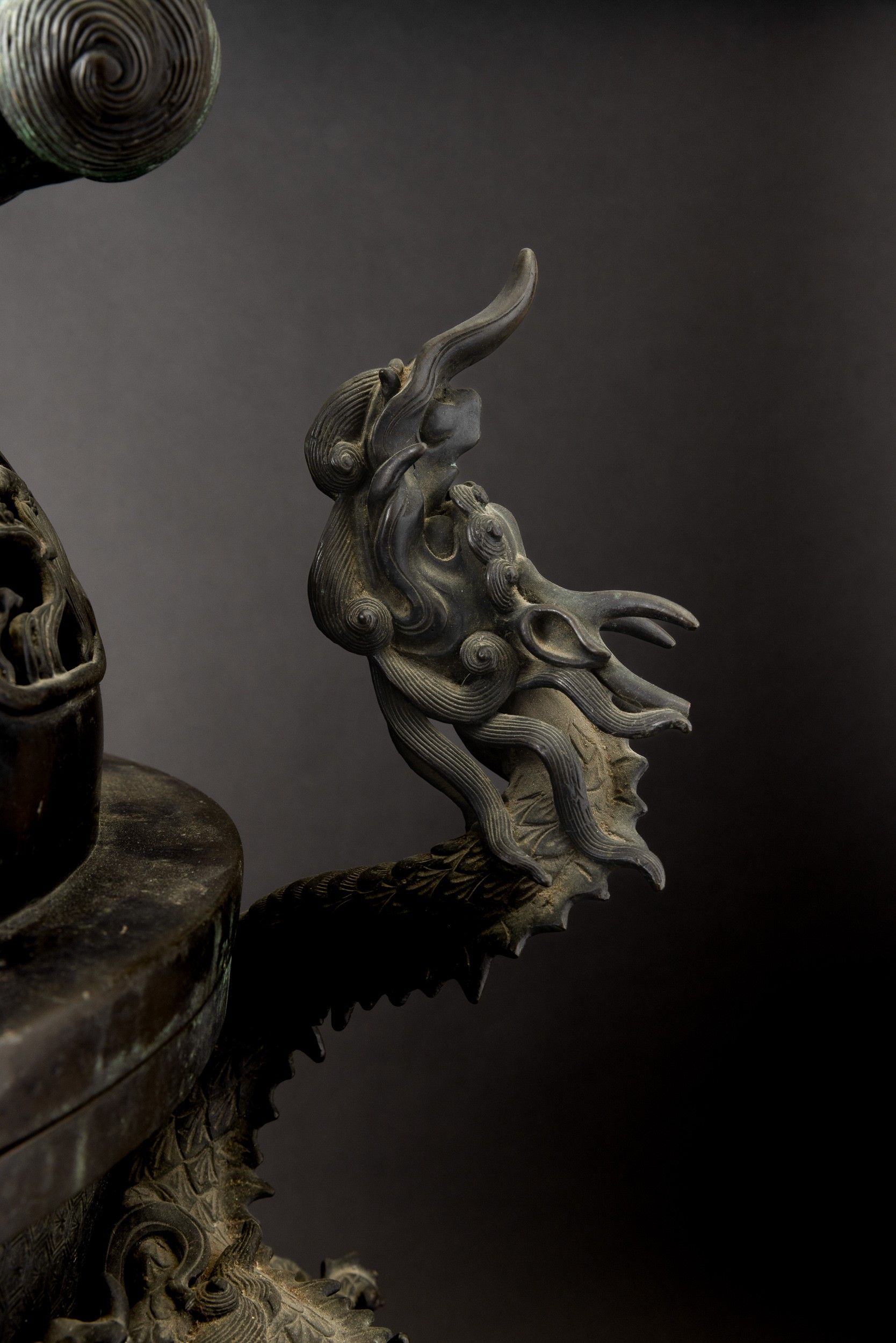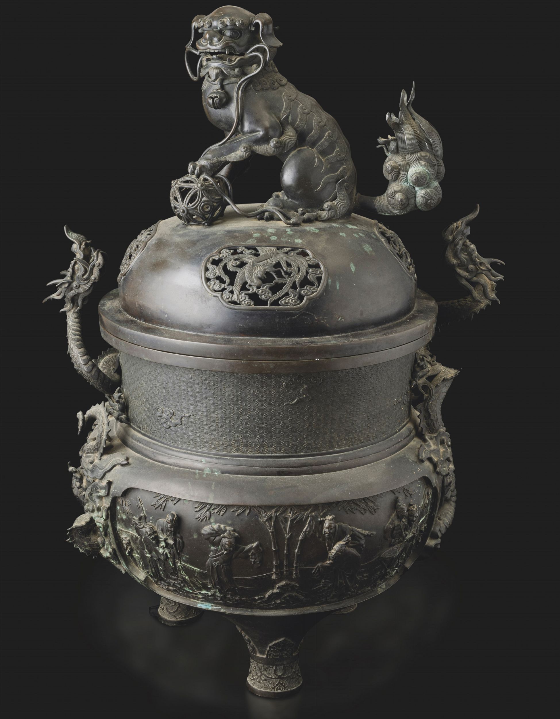 Grande incensiere in bronzo riccamente decorato con cane di Pho, Cina, Dinastia [..]